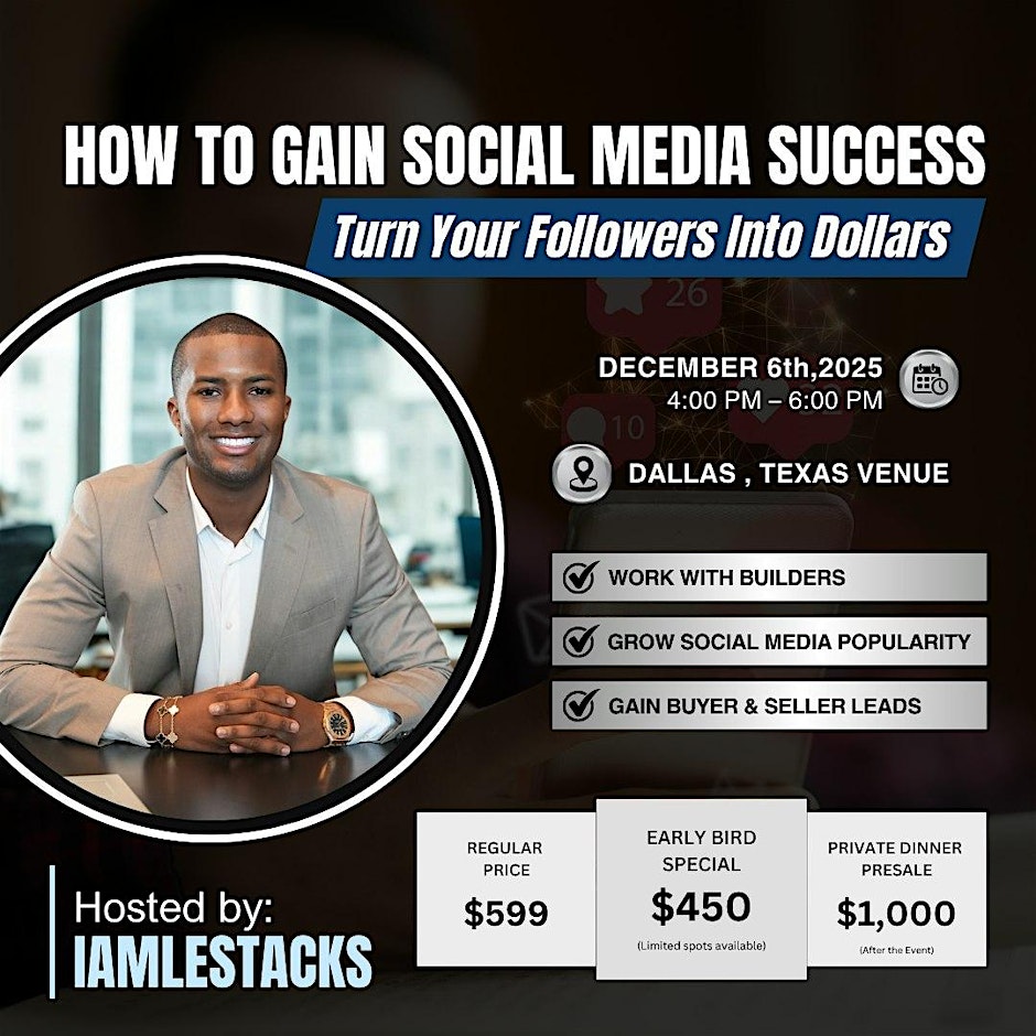 Get ready to elevate your real estate career at an event you don’t want to miss. Hosted by one of Dallas’s top realtors with the highest organic social media following, this is your chance to learn the game from someone who’s redefining success.